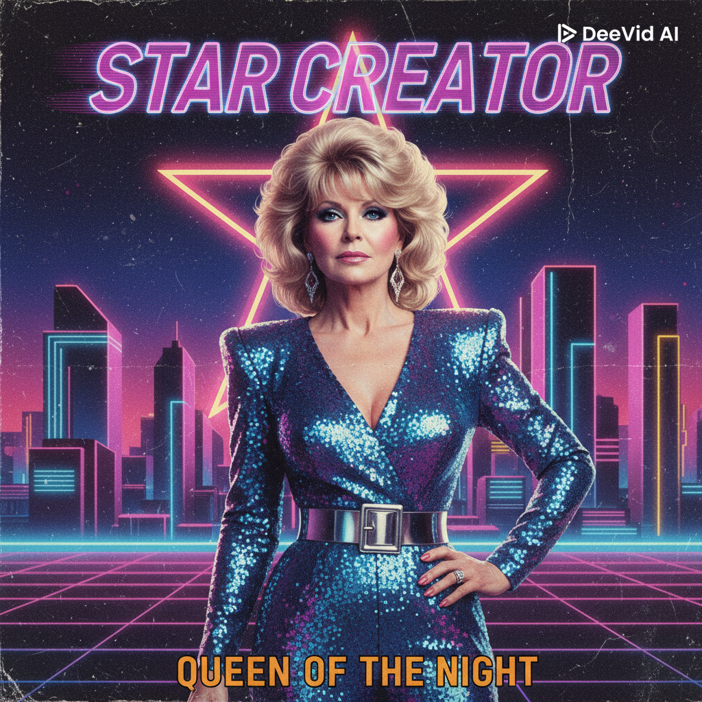 Prompt: “Use this selfie; create a vintage 1980s poster look with grain, neon text overlay ‘STAR CREATOR’, keep my face and pose the same; next version as a polished 3D figurine on a desk with soft shadow and blurred background.”