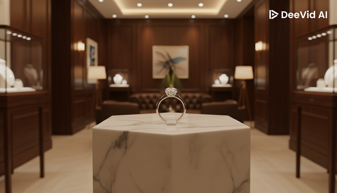 Prompt: “Place this product on a marble pedestal in a wood-panelled luxury showroom, warm ambient lighting, shallow depth of field; keep the same product orientation across all variations.”