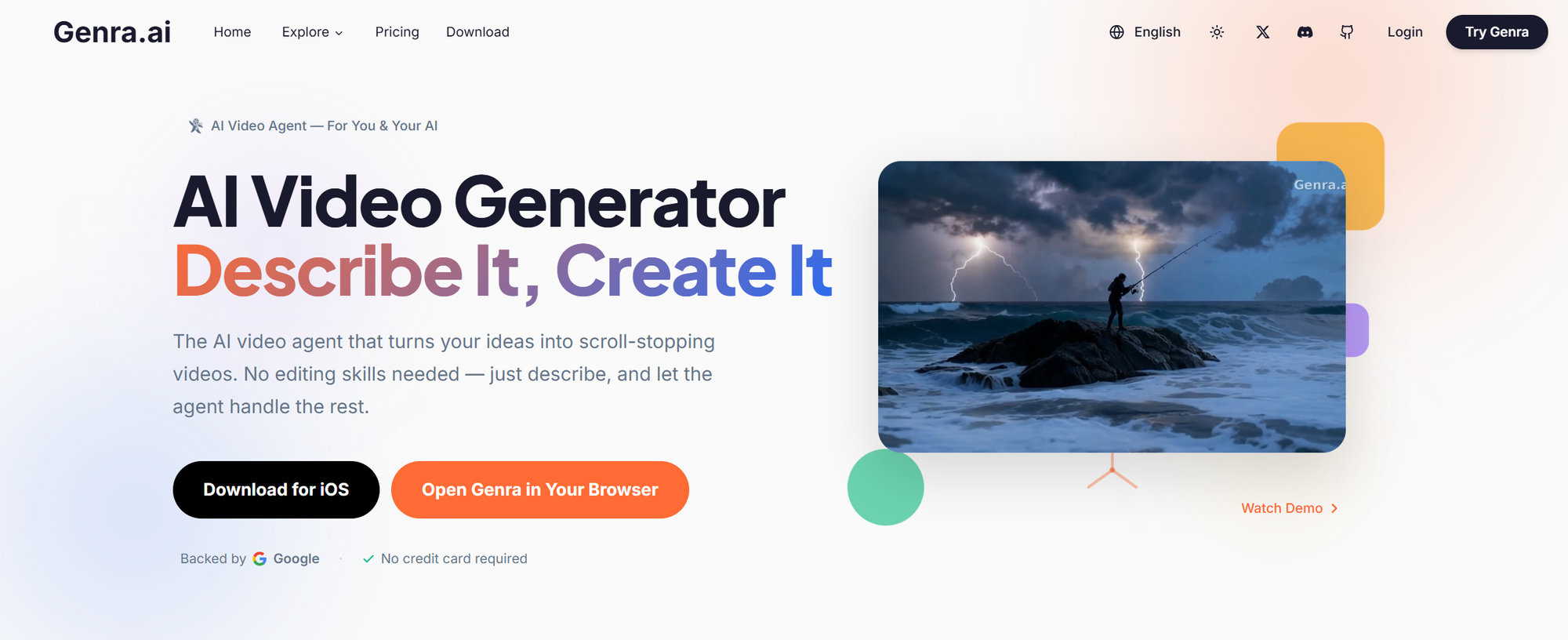 Why it’s listed: Genra represents the shift from "AI Generators" to AI Video Agents. It’s built for the "idea-first" creator—someone who has a vision but doesn't want to get bogged down by complex technical settings. It bridges the gap between a simple thought and a cinematic clip through intelligent, natural dialogue.